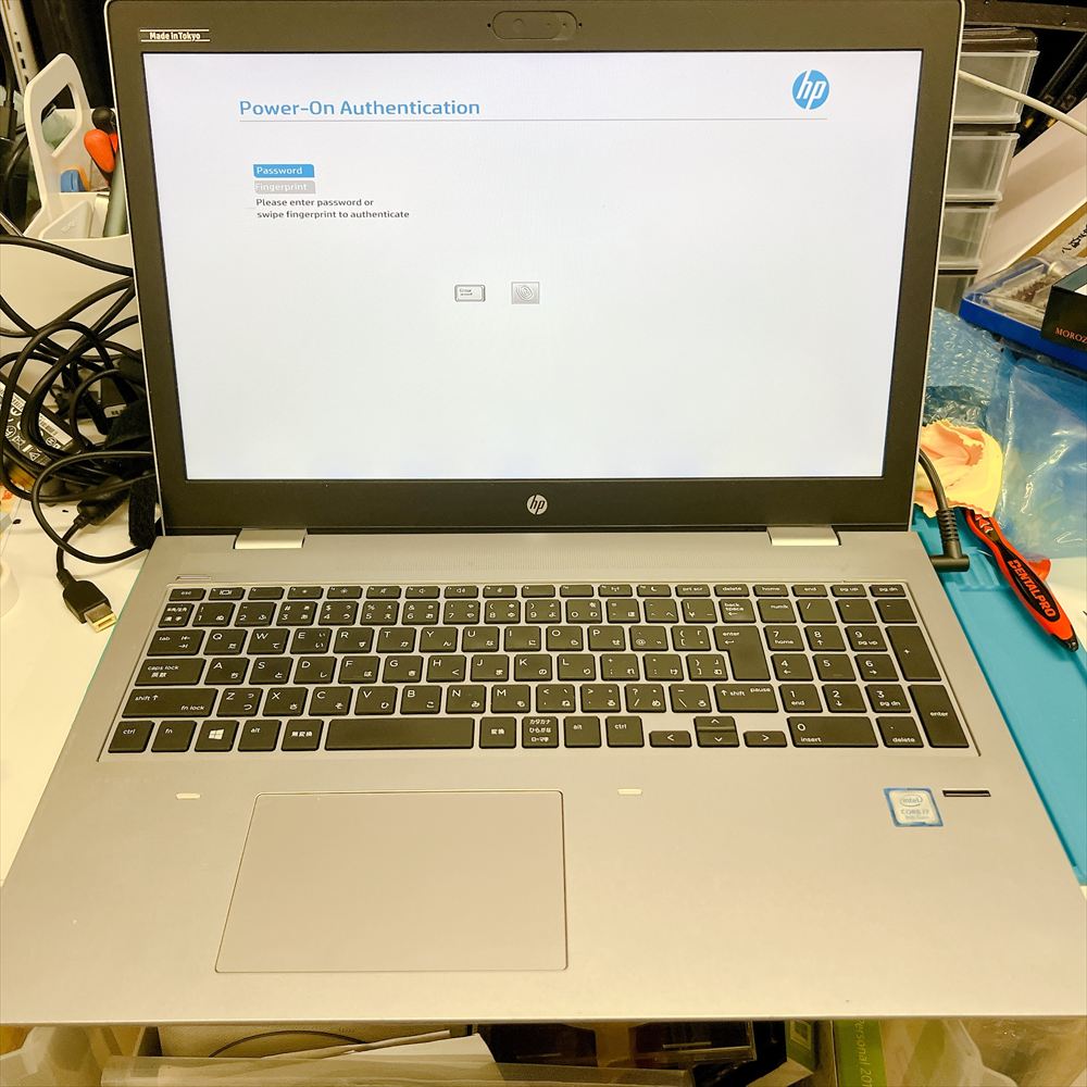 写真を見ると第8世代のパソコンである可能性が高かったのと、実は以前HPのノートPCのBIOSロックを解除した経験があったので、同様の方法で解除できるかもしれないと思い、入札してみました